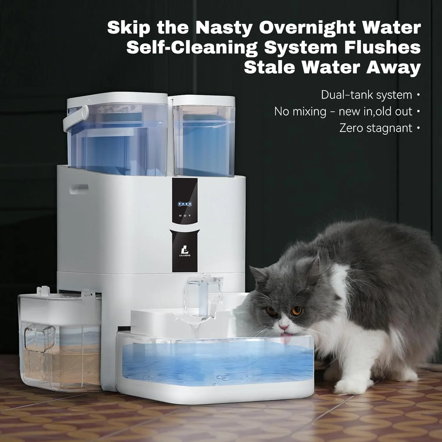 Cette fontaine intelligente de dernière génération fournit non seulement de l'eau fraîche, mais la filtre, la surveille et la maintient propre automatiquement, améliorant ainsi la santé et le bien-être de votre animal chaque jour.